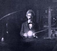 Samjuel Klemens (Mark Tven) Takođe jo� jedan pisac je bio je pripadnik Teslinog kruga prijatelja Samjuel Klemens, odnosno Mark Tven (Mark Twain 1835–1910). Iako u Teslinoj biblioteci nema Tvenovih knjiga, slike načinjene u Teslinoj laboratoriji jasno stavljaju do znanja da su njih dvojica bili vi�e nego savremenici. U periodu nakon zav�etka �kolovanja u Realnoj gimnaziji Teslu je savladala te�ka bolest. Le�eći u postelji dobio je nekoliko tomova savremene knji�evnosti: “Bila su to prva dela Marka Tvena kojima verovatno dugujem čudesno oporavljanje, koje je usledilo. Dvadeset pet godina kasnije kada sam upoznao gospodina Klemensa i kada smo postali prijatelji, ispričao sam mu to svoje iskustvo i sa zaprepa�tenjem sam gledao tog velikog majstora smeha kako plače."