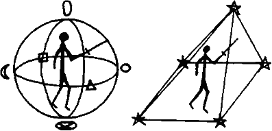 oru�ja. Treće, granica se ojačava simbolima moći koji se crtaju magijskim oru�jem. Tradicionalna petokraka zvezda ili pentagram se mo�e koristiti, ili osmokraka zvezda Haosa, ili bilo koja druga forma. Reči moći se takođe mogu koristiti. Četvrto, mag te�i beskonačnoj praznini kratkim ali odlučnim trudom da zaustavi misli.