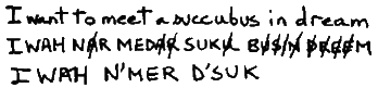 Crte� 2 pokazuje kako se sigil mo�e konstruisati od reči, slike, i zvuka. Tema kod ovih čini je proizvoljna a ne preporučena. Da bi se uspe�no izgubio sigil, forma sigila i asocirana �elja se moraju oterati iz normalne budne svesti. Mag te�i protiv bilo kakve manifestacije kod obadve makar i sna�nim skretanjem svoje pa�nje prema drugim stvarima. Nekada se sigil mo�e zapaliti, ili zakopati, ili baciti u more. Moguće je izgubiti reč čini konstantnim ponavljanjem jer ovo na kraju isprazni um od povezanih �elja. Sigil se puni u trenucima kada um postigne nemost kroz magijski trans, ili kada velika emocionalnost paralizuje njegovo normalno funkcionisanje. U tim trenucima se koncentri�emo na sigil, bilo kao mentalnu sliku, mantru, ili nacrtanu formu. Neki od trenutaka kada se sigili mogu napuniti su slijedeći: tijekom magijskog transa; u trenutku orgazma ili velikog odu�evljenja; u trenucima velikog straha, besa, ili sramote; ili u trenutku kada se intenzivna frustracija ili razočaranje pojavi. Alternativno, kada se druga sna�na �elja pojavi, �elja se �rtvuje (zaboravlja) i koncentraciju na sigil treba nastaviti. Nakon dr�anja sigila u umu �to je du�e moguće, preporučljivo je oterati ga prizvanim smehom. Zapisi bi se trebalo čuvati za svaki rad sa sigilima ali ne na način da se izazove svesno razmatranje preko sigilizirane �elje.